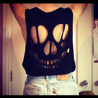 Deci. Am un tricou lung in spate si scurt in fata, dar e prea simplu. Vreau sa il tai in spate sa ii fac o forma sau ceva. In afara de craniu, ce as putea sa ii fac in spate? Idei? Fundtitaa