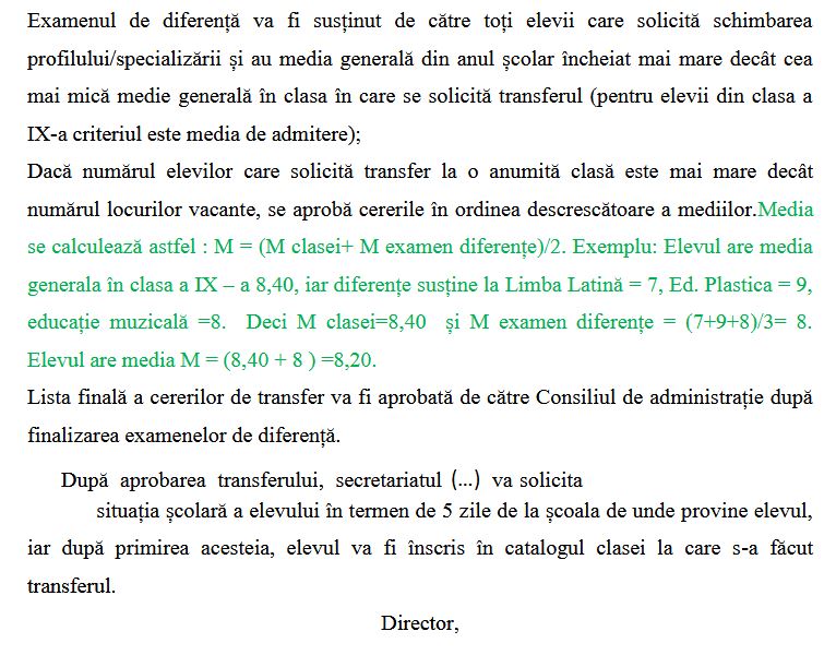 Pentru informații privind examenele de diferență, poți întreba la secretariatul liceului unde vrei să te transferi. În general, se susțin diferențe la disciplinele pe care NU le-ai studiat la fostul liceu.